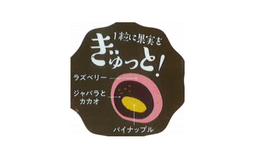 園田学園大学食マネジメント学科食品開発チームにより考案され、高岡食品工業(株)(尼崎市)とのコラボにより生まれたリッチな一口チョコレート。パイナップルのドライフルーツをジャバラ入りのカカオで包み、ラズベリーのチョコレートでコーティング。リラックスタイムをちょっと贅沢に。豊かな味わいをお楽しみください。