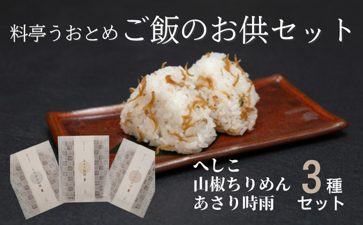 - 料亭のご飯のお供3種セット (へしこ、山椒ちりめん、あさり時雨)【料亭うおとめ】