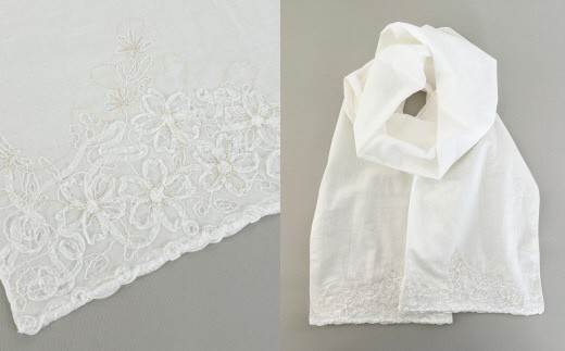 ストール さくら柄 刺繍ストール オーガニックコットン ( ホワイト ) レディース 日本製 | サクラ 桜 おしゃれ シンプル マフラー 春夏 春 夏 プレゼントギフト 母の日 新潟県 五泉市 有限会社田中刺繍