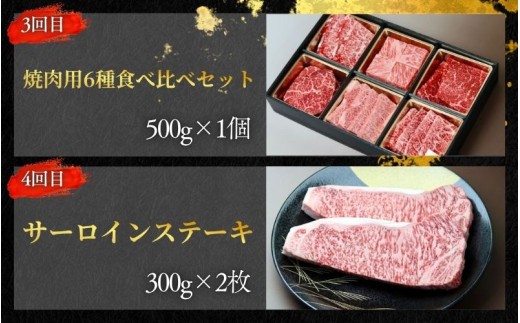 - 【全4回】美熊野牛 定期便D <すき焼きしゃぶしゃぶ用ロース&赤身モモ肉 800g・切り落とし 800g・焼肉用6種食べ比べ 500g・サーロインステーキ 300g×2枚> 牛肉 肉 ブランド牛 和牛 黒毛和牛 国産牛 すき焼き しゃぶしゃぶ 赤身 赤身肉 焼肉 ステーキ サーロイン 肉定期便 人気 希少 おすすめ 三重県 熊野市【okad-tkb0022】