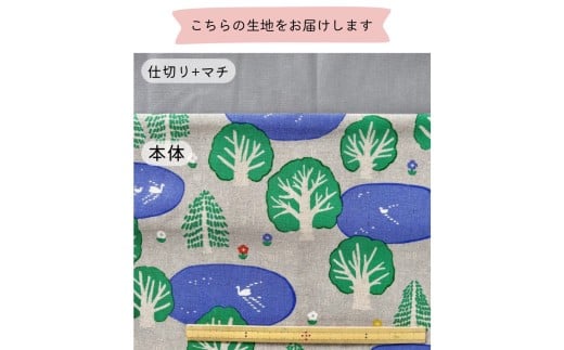 ※お送りする生地は【北欧森グリーン×ブルーグレー(作品一つ分)】になります。表地以外の部分は、完成画像と同じ素材をお届けします。