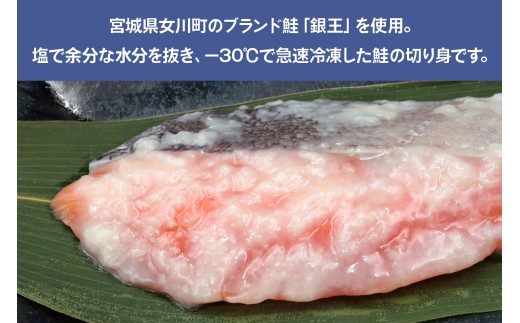 宮城県女川町で養殖ブランド鮭「銀王」を使用した鮭の切り身。