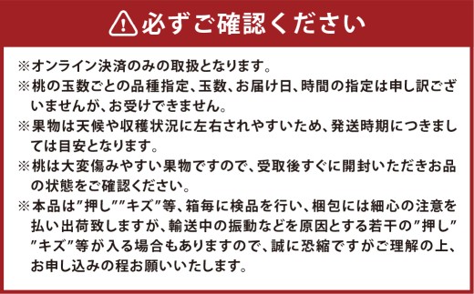 ※桃の玉数ごとの品種指定、玉数、お届け日、時間の指定は申し訳ございませんが、お受けできません。