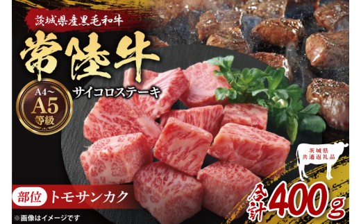 【茨城県共通返礼品】最高級常陸牛 希少部位 サイコロステーキ 400g (トモサンカク)|ブランド牛 銘柄牛 和牛 黒毛和牛 国産 A5・A4ランク 等級 お肉 牛肉 ステーキ 茨城県 大子町(DD017)