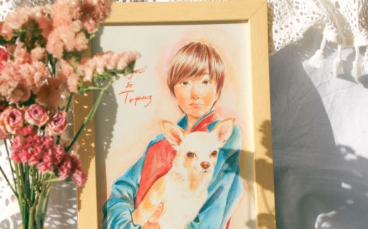 御嵩町出身・在住の作家が、水彩色鉛筆で丁寧に描く一点もの。幼い頃からこの町の自然や人に囲まれて育ち、絵を描くことが日常だった作家が、「ただ似ている」だけでなく、その人らしい空気感や温もりまでも表現します。