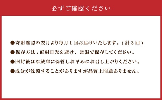 | 発送期日 | 寄附確認後の翌月より毎月1回(計3回)お届けいたします。 |