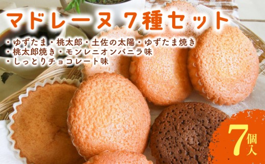 マドレーヌ 7種セット 7個入 | ゆずたま 桃太郎たまご チョコ チョコレート バニラ はちみつ 蜂蜜 ハチミツ アーモンド 焼き菓子 お菓子 おかし 贈答用 ギフト 包装 スイーツ 人気 おすすめ たまご 卵 高知県 南国市