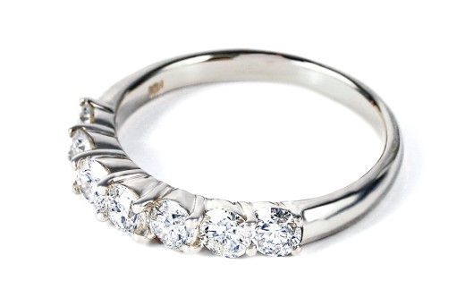 大粒のダイヤモンドを7石使用した、トータル1キャラットのハーフエタニティリングになります。