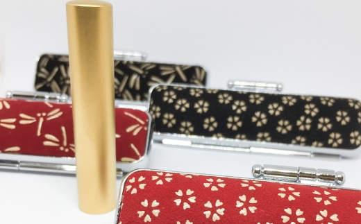 - 【黒地に白漆サクラ柄】印鑑 甲州印伝ケース付ゴールドチタン印鑑12mm丸