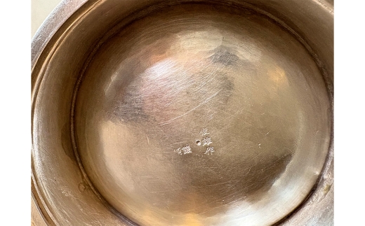 本返礼品は、銀の板を鍛金の技術で打出し均して、胴と高台を接合してビアカップとなっており、胴体部分は金鎚で縦線の文様を打ち出している。これら全ての工程を秩父市内にて行っております。