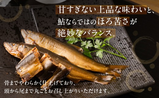 甘すぎない上品な味わいと、鮎ならではのほろ苦さが絶妙なバランス。ご飯のお供にはもちろん、日本酒やビールのおつまみにも最適です。