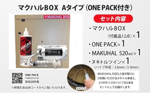 ロードバイクのパンク防止材「マクハル」と、専用の温度管理ボックス「マクハルBOX」に、パンク修理キット「ONE PACK」がセットになりました。
