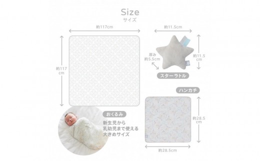 新生児から乳幼児まで長く使える大きめサイズのおくるみ。