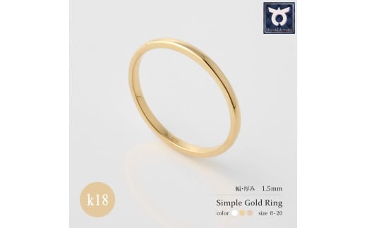 - 1.5mm シンプル地金リング K18YG/K18PG/K18WG【サイズ:8~20号】